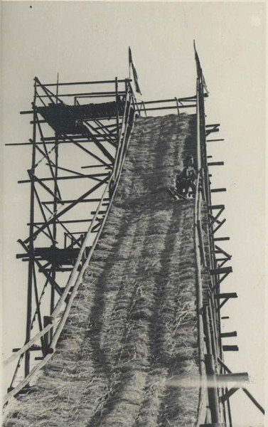 Skákání v zimě bylo pro místní sportovce málo, a tak v padesátých letech vytvořili umělý povrch na můstku z cepové žitné slámy, kterou navázali na konstrukci drátem.